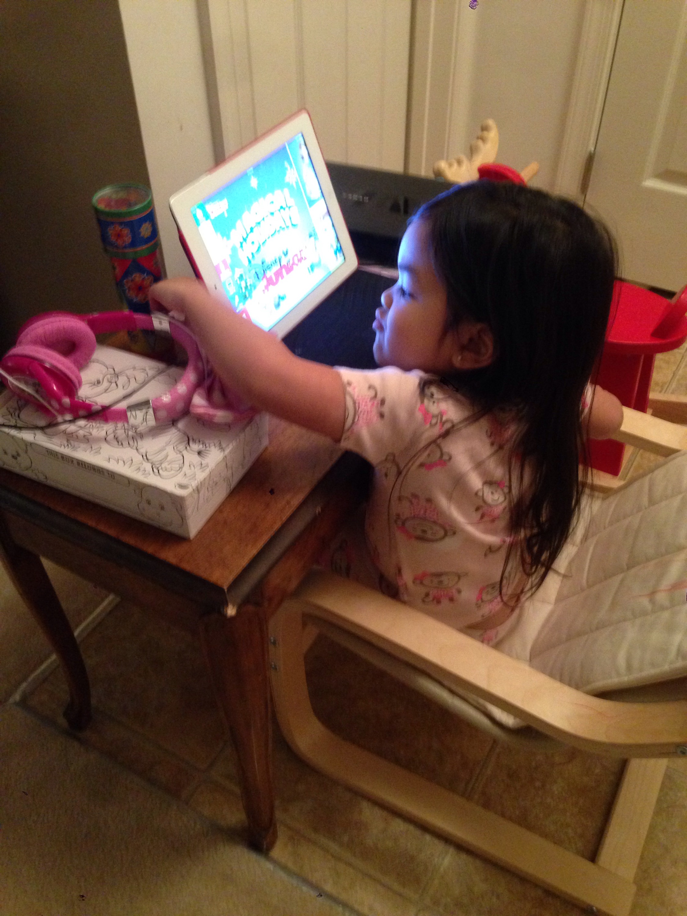 I stayed home sick and Kira set up her office complete with a rocking moose by the front door. She’s one busy girl!