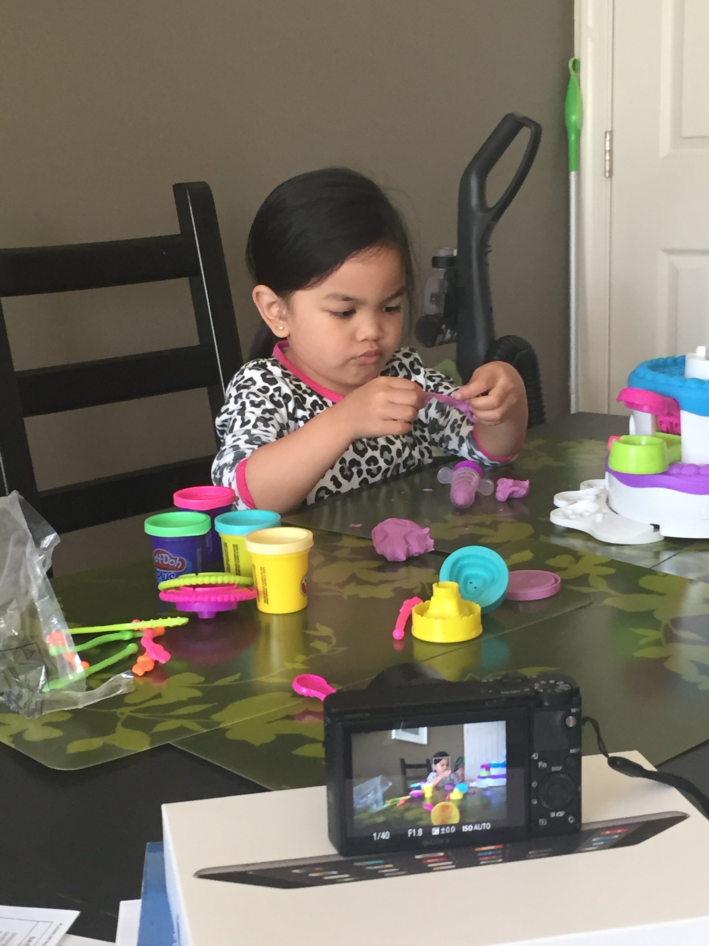 Kira was complaining that her Play Doh is now hard and she can’t play with it anymore so Mommy went and took her to buy some new ones. Also, she got those puckered lips when concentrating look from Krissy!
