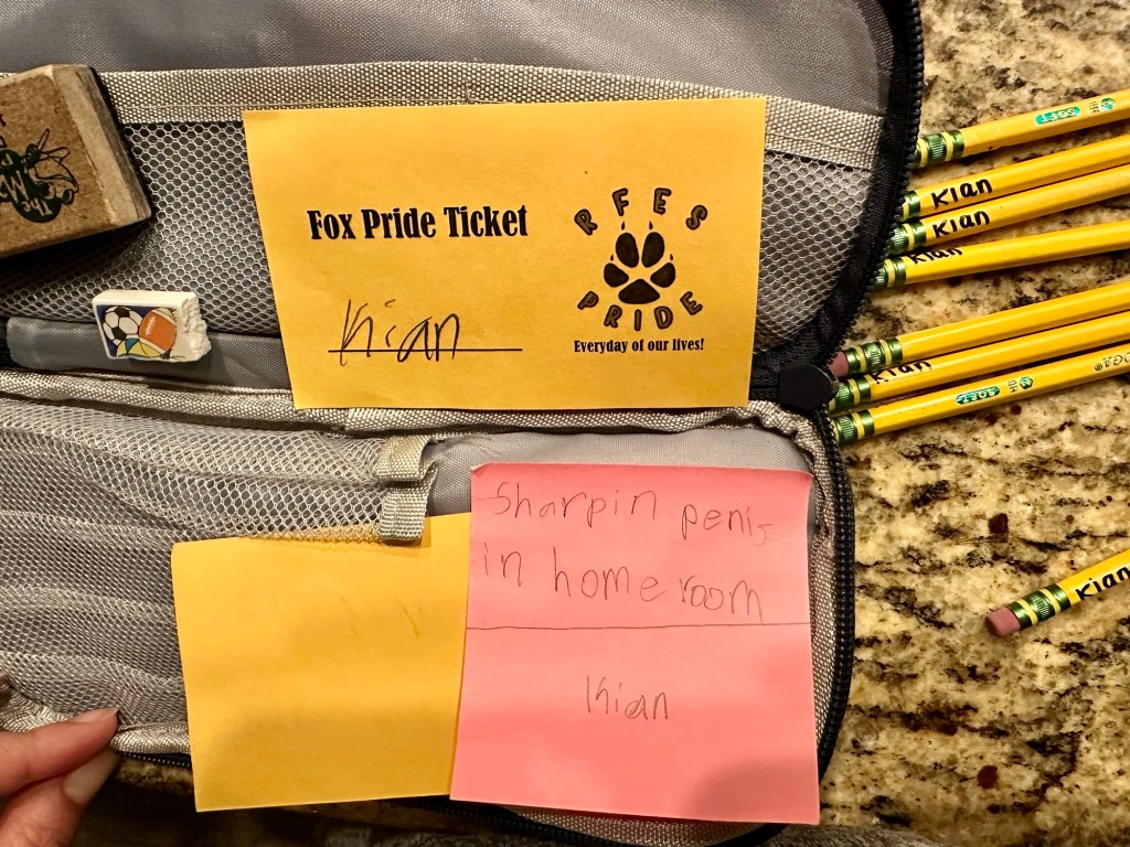 Krissy asked Kian to write a note to himself so he doesn’t forget to sharpen his pencils in homeroom. Kian had other plans.